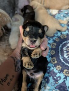 Surprisingly, it appears that four out of five puppies may be sired by Jenga, despite his young age at the time of breeding. While this pairing of more than one sire is not something we typically do it offered a unique opportunity to observe Miniature Schnauzer colour genetics in action.