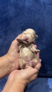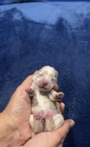 This puppy’s pads and nose are already looking to be turning black, which would make this puppy black based and therefore a Jenga puppy.